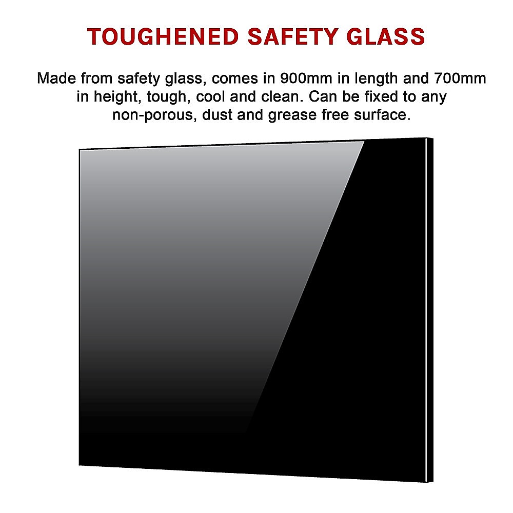 Toughened 90cm x 70cm Black Glass Kitchen Splashback
