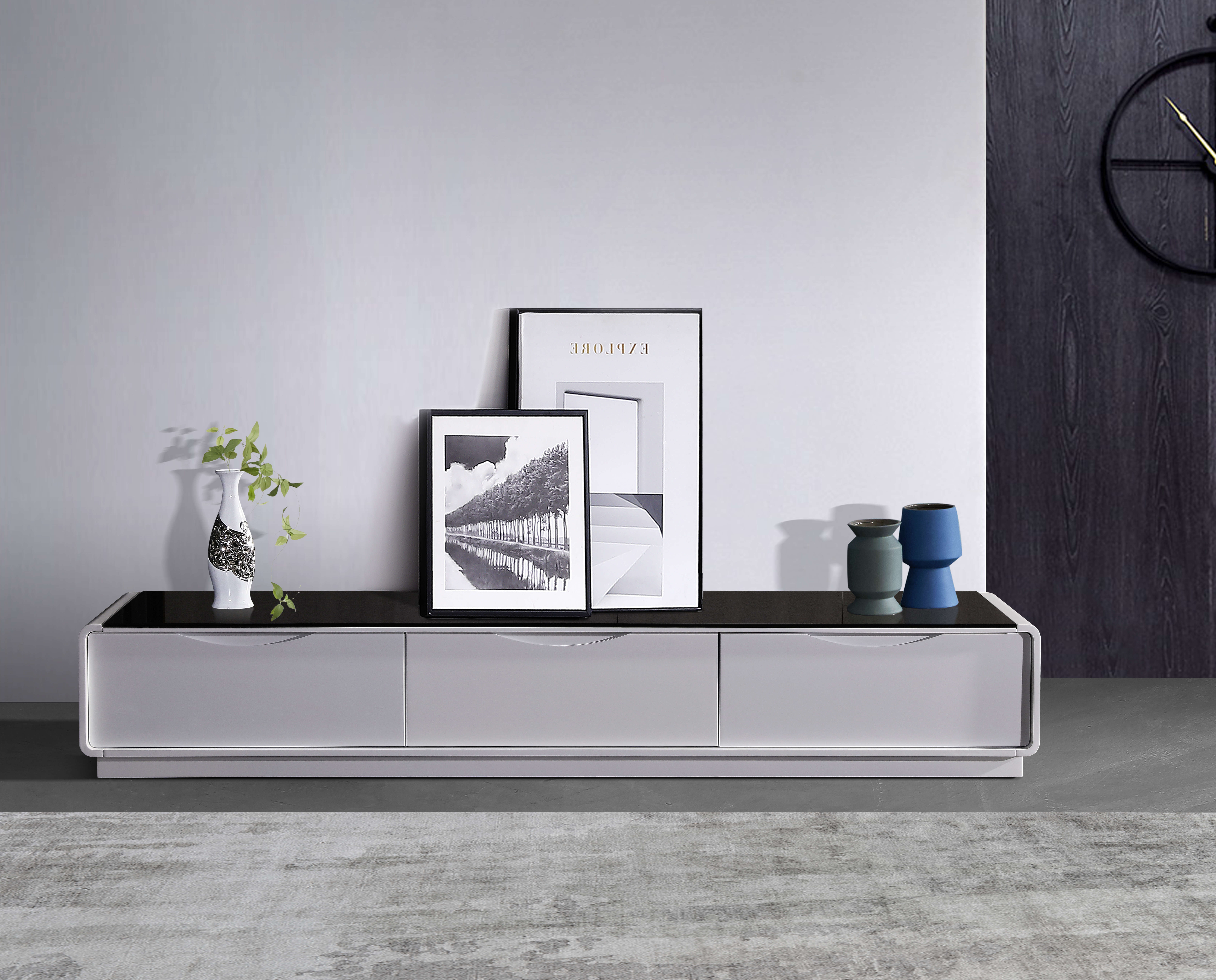 1 x Metro TV Cabinet Black Glass White Painting