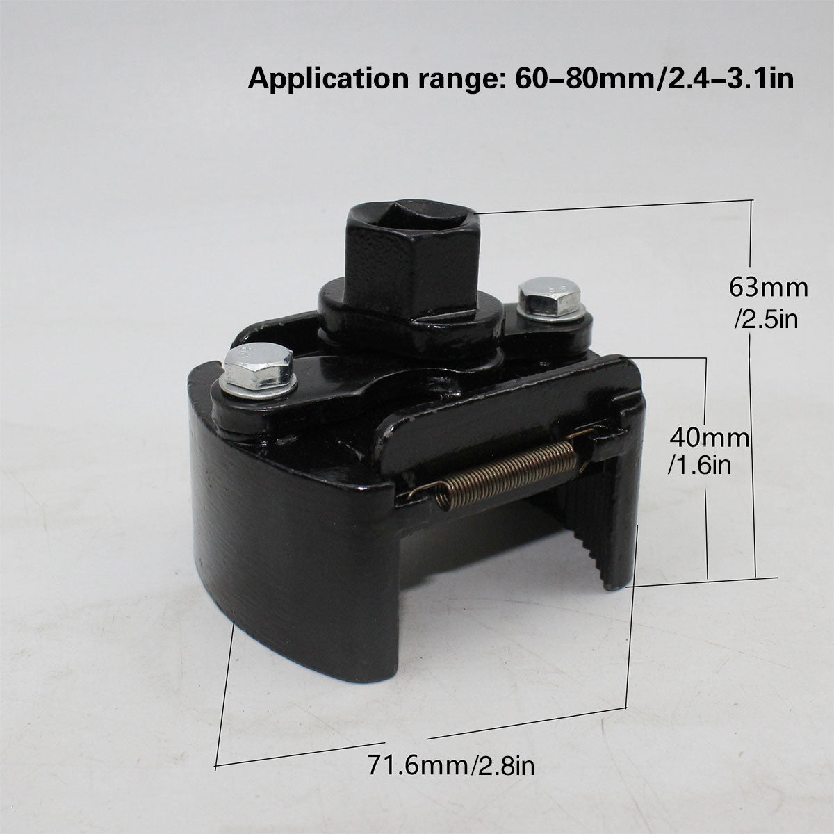 This compact and durable U-shaped oil filter wrench is designed to grip and remove oil filters in the 60–80mm range with ease. The heavy-duty construction and spring-loaded design provide a secure hold while preventing damage to the filter. Suitable for cars, trucks, and motorcycles, it is ideal for both professional mechanics and home garage maintenance. The adjustable serrated jaws ensure a firm grip, while the universal fit accommodates a wide variety of oil filters.