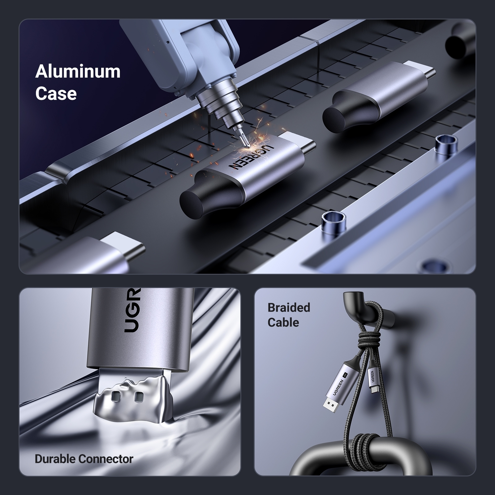 Braided Nylon cable adds durability and strain relief making plug-and-unplug easier. Premium Aluminum Alloy Shell for greater heat dissipation. High-quality connectors achieve secure, high-speed data transmission, and the solid construction makes this USB C to Displayport cable unbreakable. A thicker copper wire has maximum conductivity while minimizing signal loss. This Type C to DP 1.4 cable is the ideal cable for home offices.