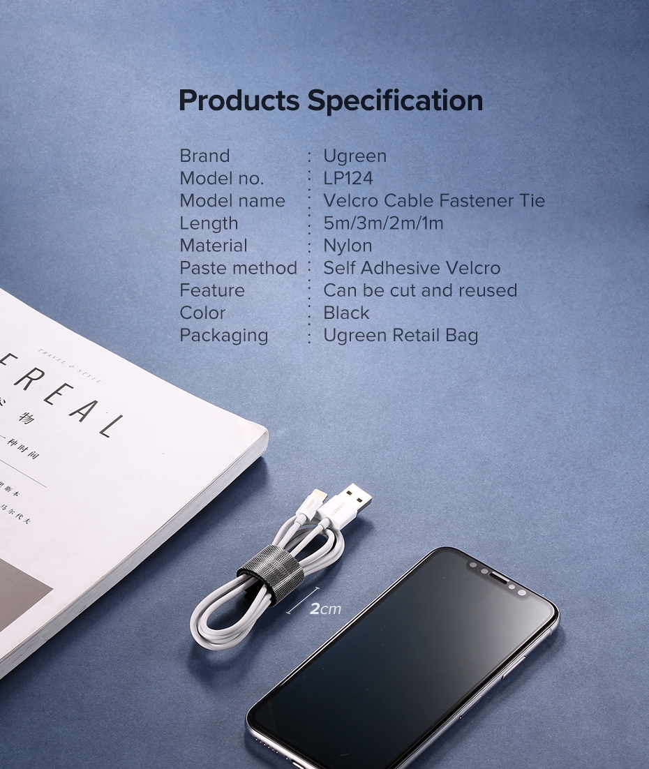 UGREEN cable fastening tape is a low profile and economical option of cord organization, management and storage for computer, guitar cables, speaker and mic wires and electronics extension cords.