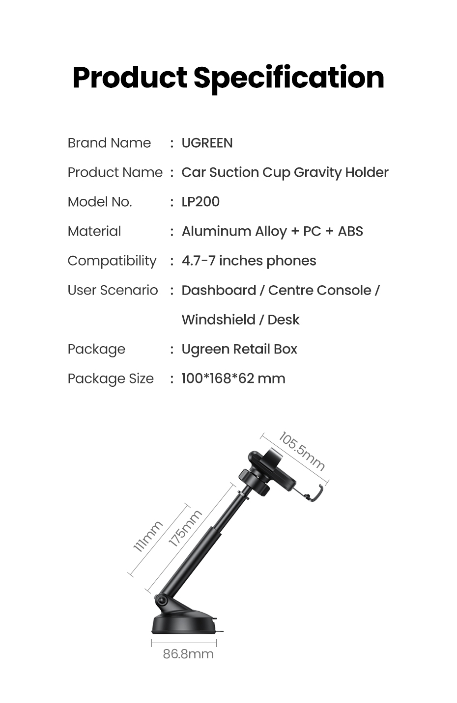 UGREEN 60796 Car Bracket Dashboard Mount