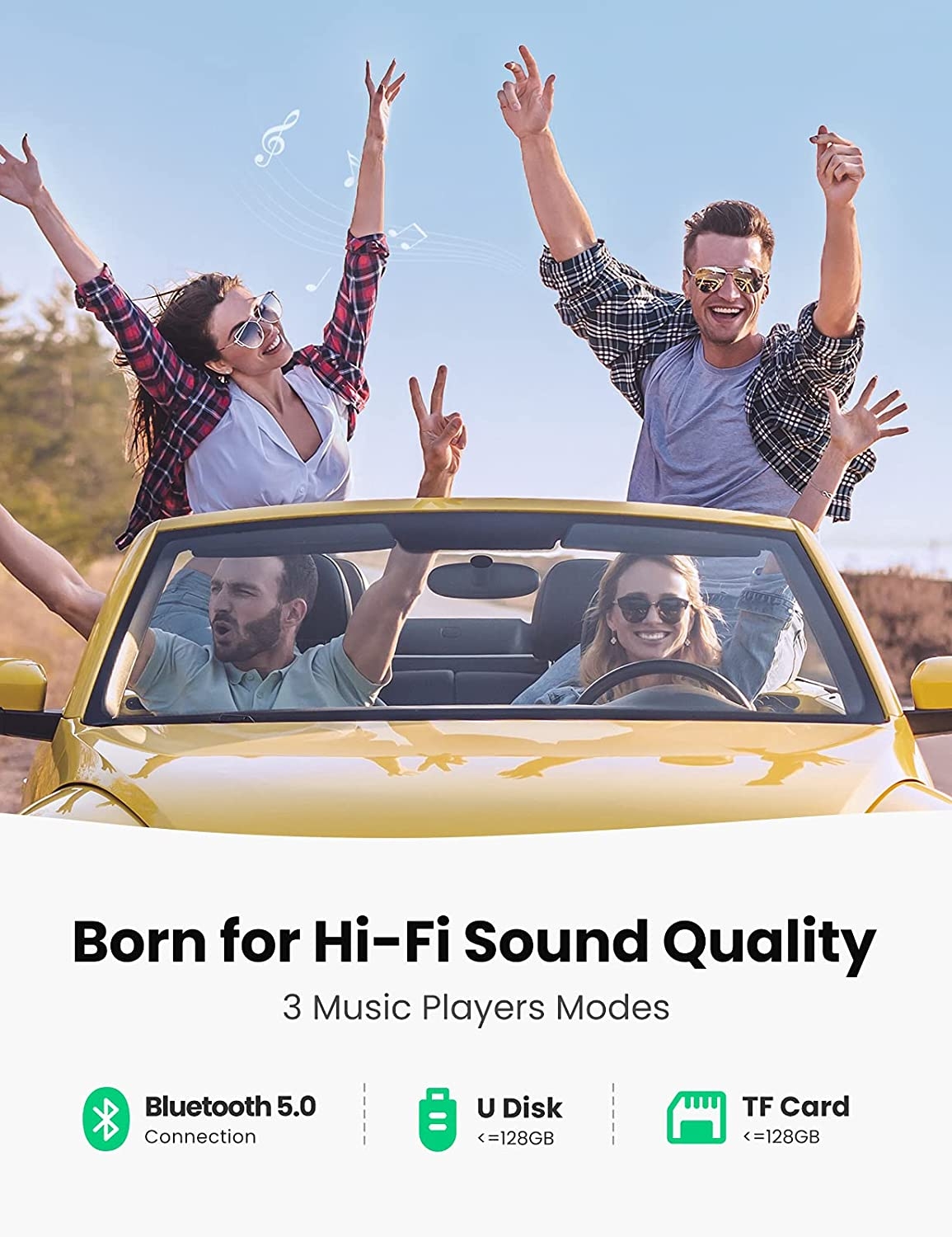 With advanced Bluetooth V5.0 chip, transmit speed up to 3Mb/s, provides faster and stronger pairing and more stable sound than other normal products in the market. High-performance microphone with Noise Suppression (CVC) technology, grants you crystal clear call. Answering/redialing/dismissing or ending call just simply click a button. Drive more safely, seamlessly switches between incoming calls and music.