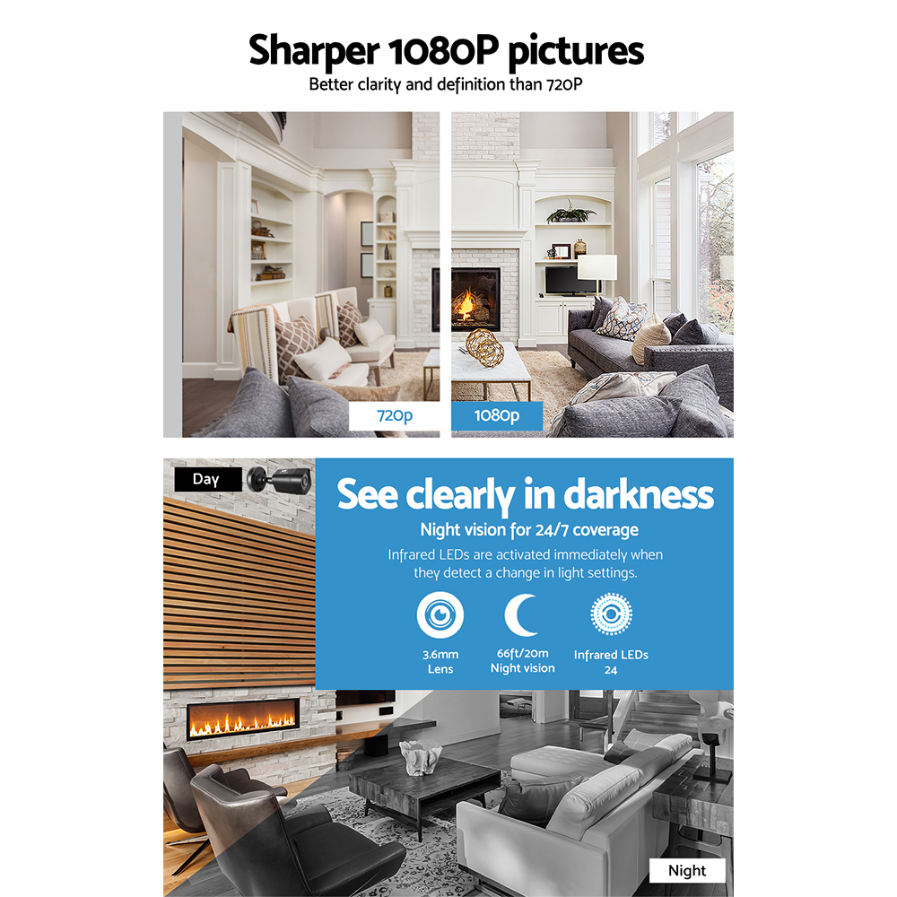 Utilizing the latest security monitoring technology, our weatherproof CCTV system is designed for both indoor and outdoor use and features record, playback and search modes. The high resolution makes it easy to identify facial features, license plates and clothing patterns for total convenience in the event of any home invasion or break-in. With its huge hard disk storage, the System enables you to review your recordings even from quite a while back. You’ll be glad to know too that your data will be also be protected from any power outage.