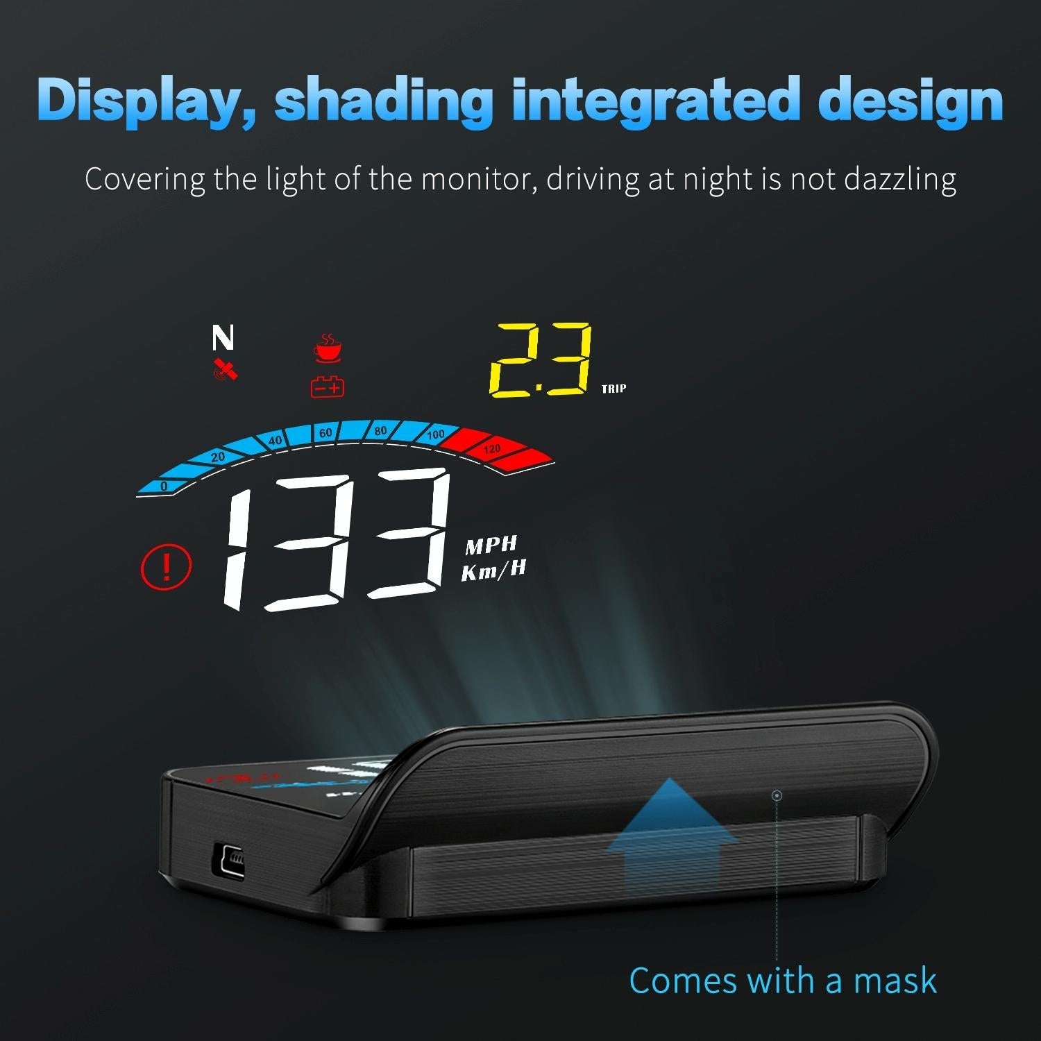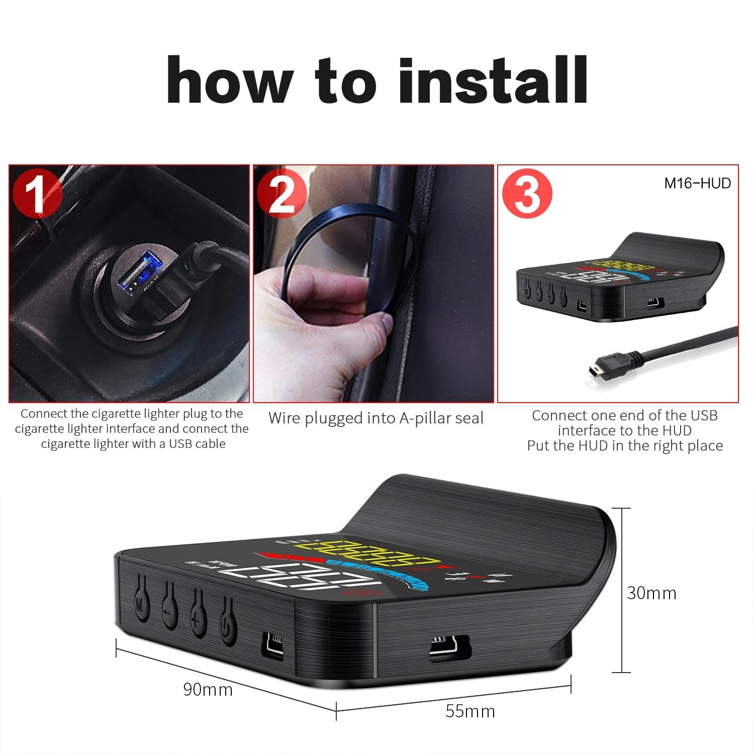 • Displays driving data on car windshield, including speed, RPM, water temperature, voltage, and single mileage