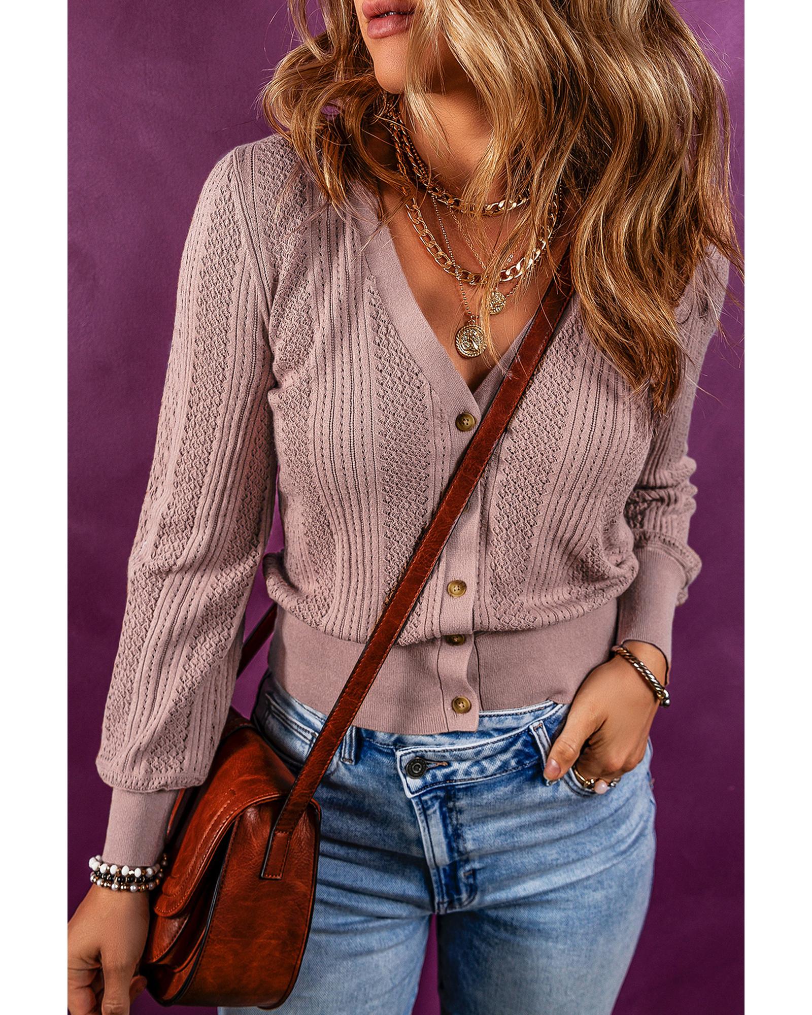 V Neck Buttoned Textured Sweater Cardigan – L