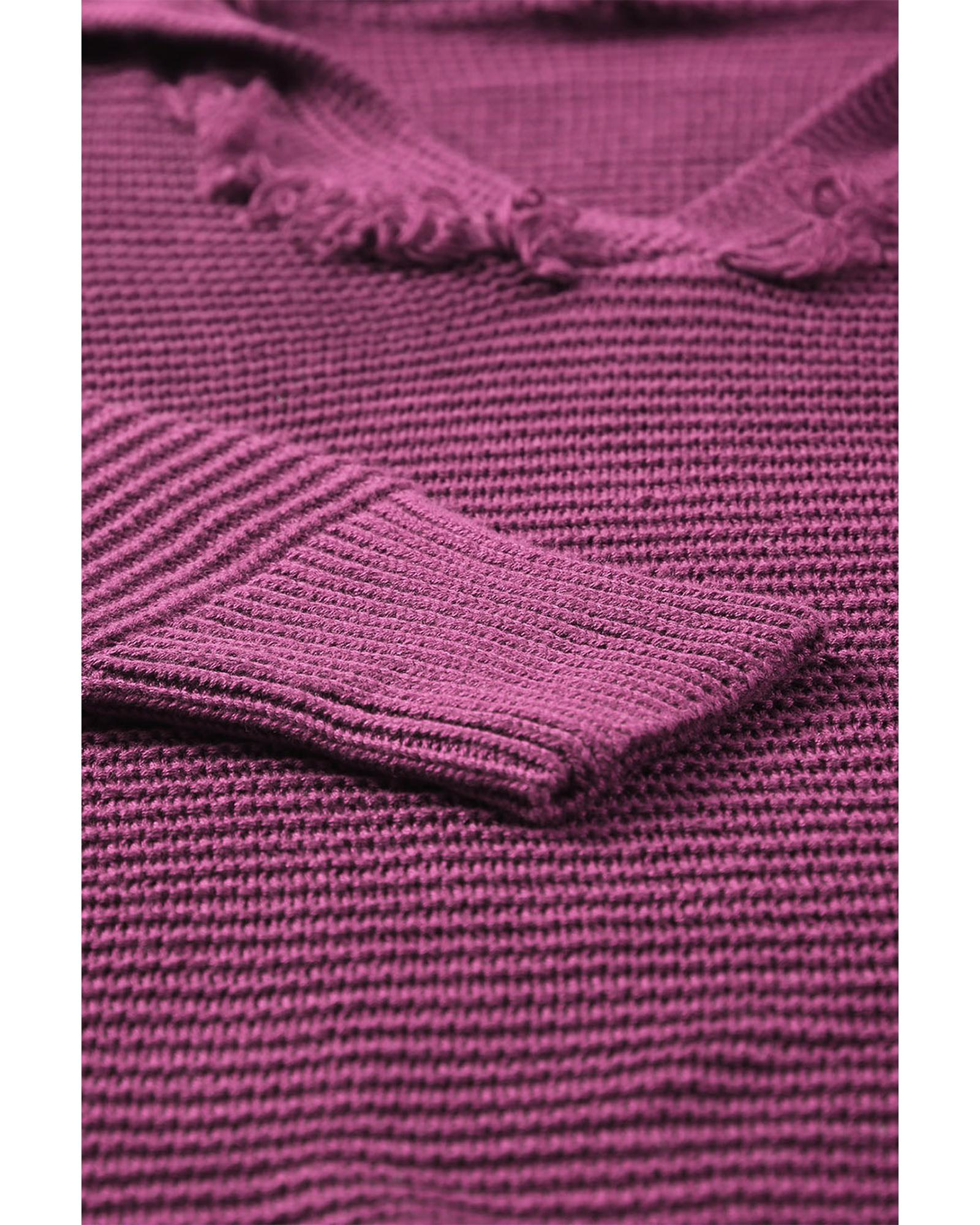 V Neck Ribbed Drop Shoulder Hooded Sweater – XL