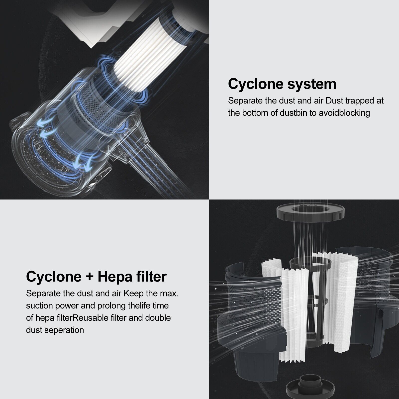 • LED Motorized Brush: Illuminate dark corners and capture hidden dust on all surfaces for a thorough clean.