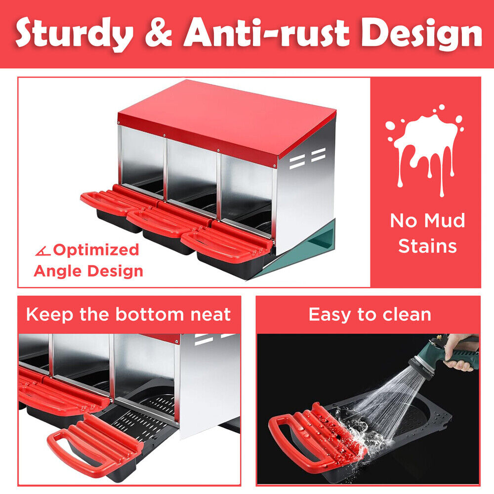 VaKa Chicken Hen Coop Hutch 3 Hole Inside Outside Roll Away Lay Egg Nesting Box