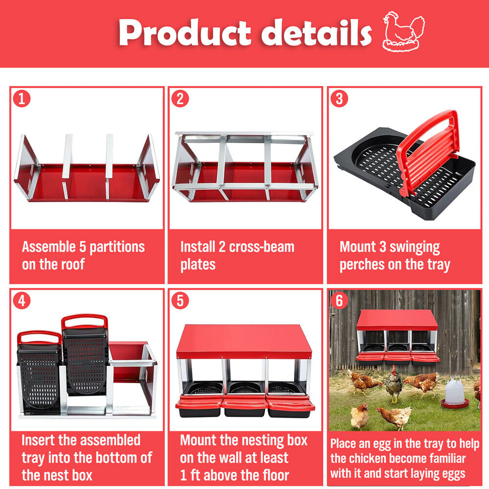 - Inside/Outside Access:Easily access the interior of the coop for cleaning and maintenance through the convenient access points. The outside access to the nesting boxes allows for quick egg retrieval without disturbing the hens.