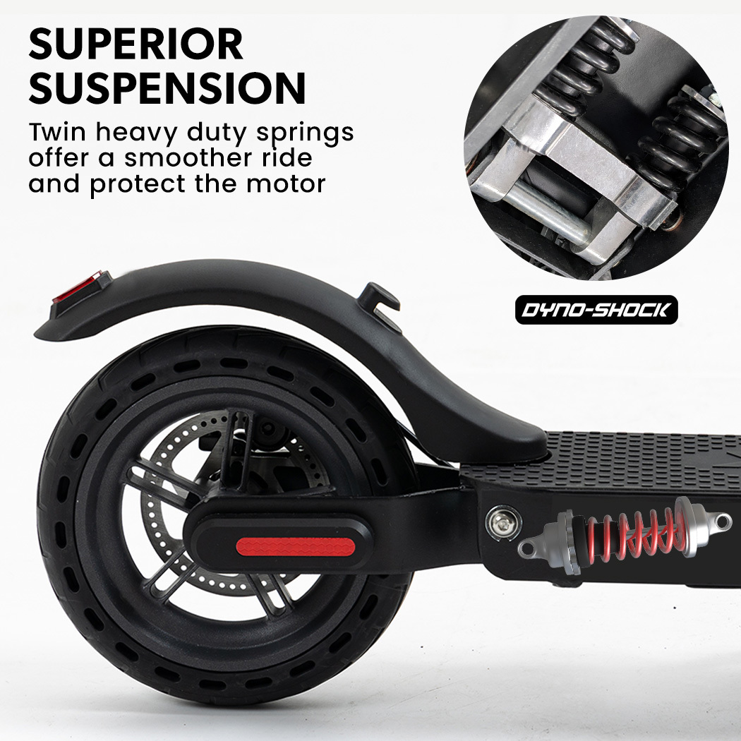 The large 8.5-inch tyres with internal honeycomb technology ensure a smooth ride, predictable handling and the benefit of never risking a puncture or requiring refilling with air!