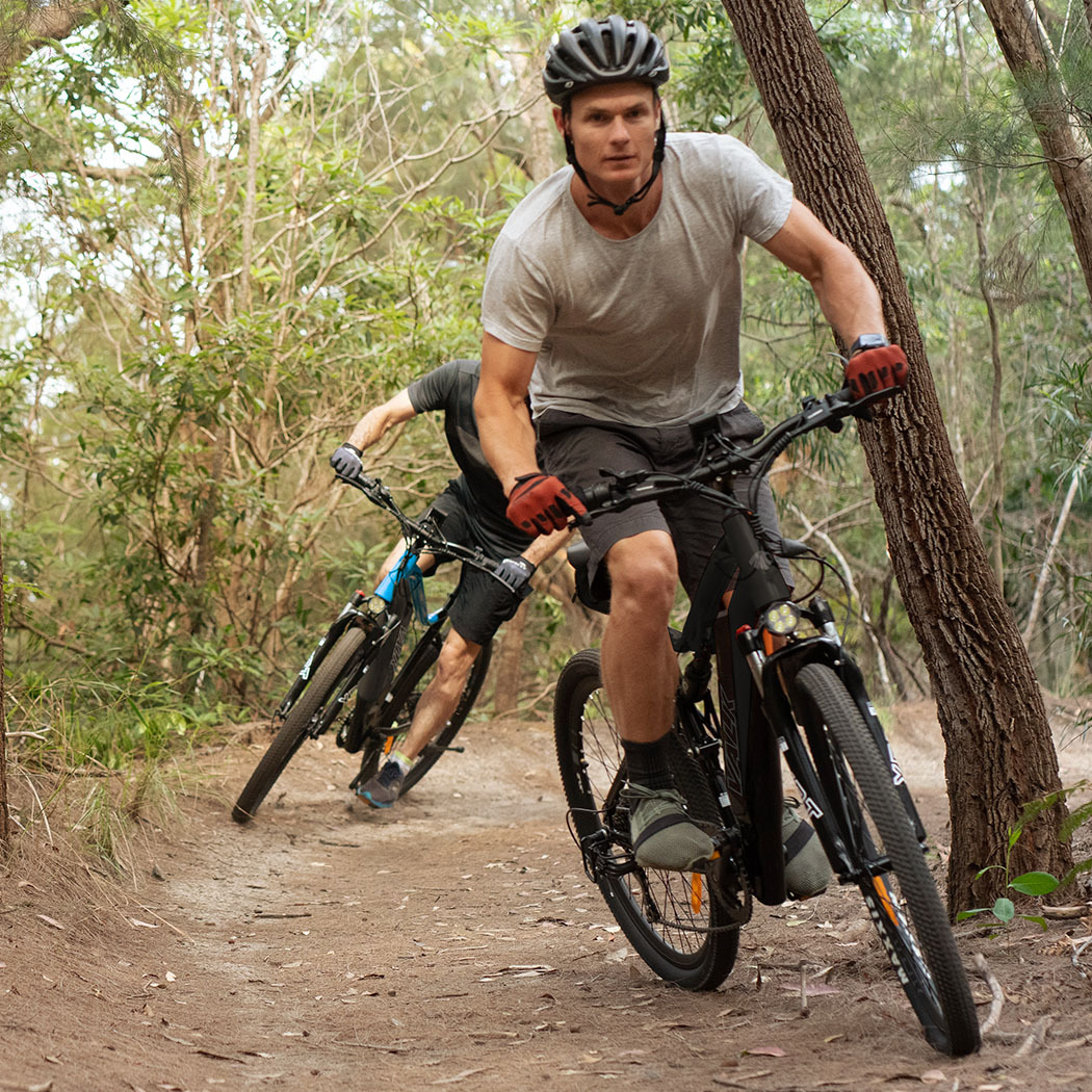 The MX7 series e-MTB comes equipped with Shimano 7-speed SIS-Index gears and derailleur, and a high performance VELO saddle. Front and rear disc brakes and low-profile dual rubber compound 27.5″ Maxxis Pace tyres offer serious control.