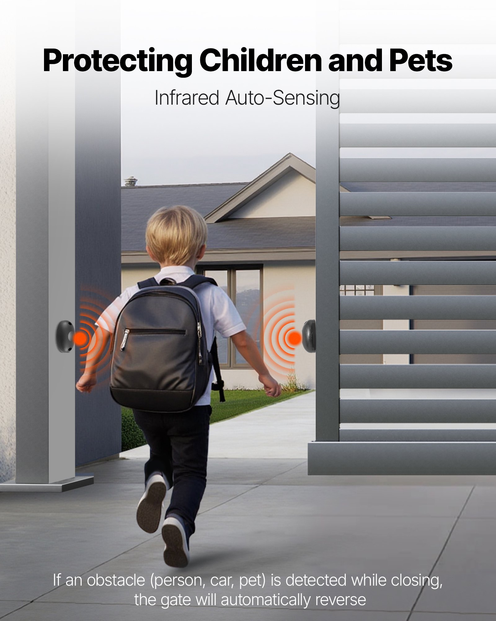 With a 280W pure copper motor and 1400r/min speed, this automatic gate opener supports up to 1799 lbs / 816 kg gates (up to 82.02 ft / 25 m wide), ensuring smooth, reliable operation for residential, farm, or commercial use.