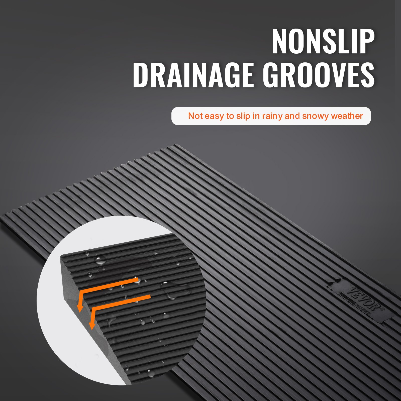 VEVOR Solid Curb Ramp provides a smooth and stable surface transition with an impressive load capacity of up to 15 tons. It is suitable for long-term transportation of wheelchairs, robotic sweepers, carts, strollers, and more, ensuring excellent pressure resistance without deformation.