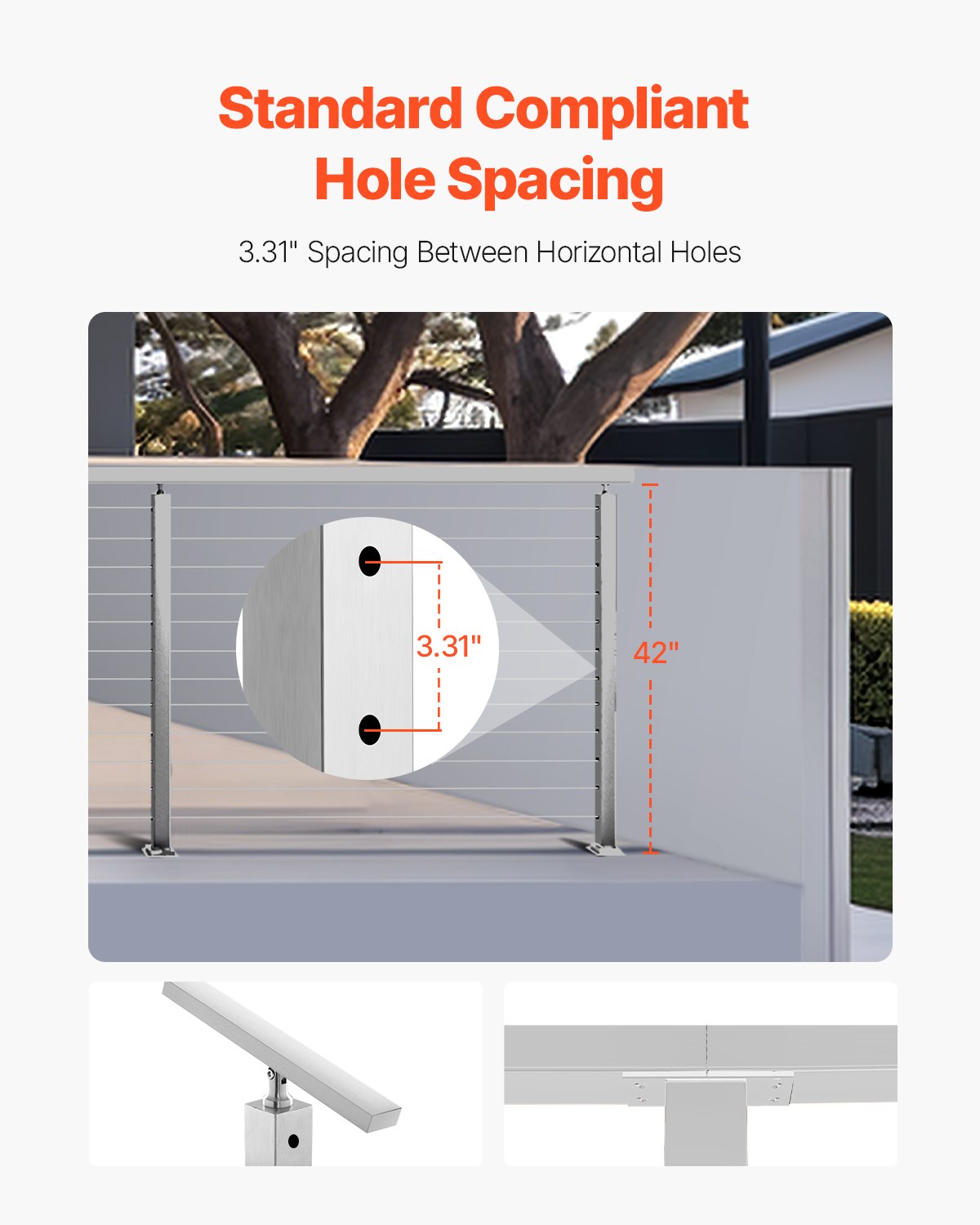 VEVOR Cable Railing Post 42x2x2 Inch Pre-Drilled Post 1JZLGZXYS1061EF8W001V0