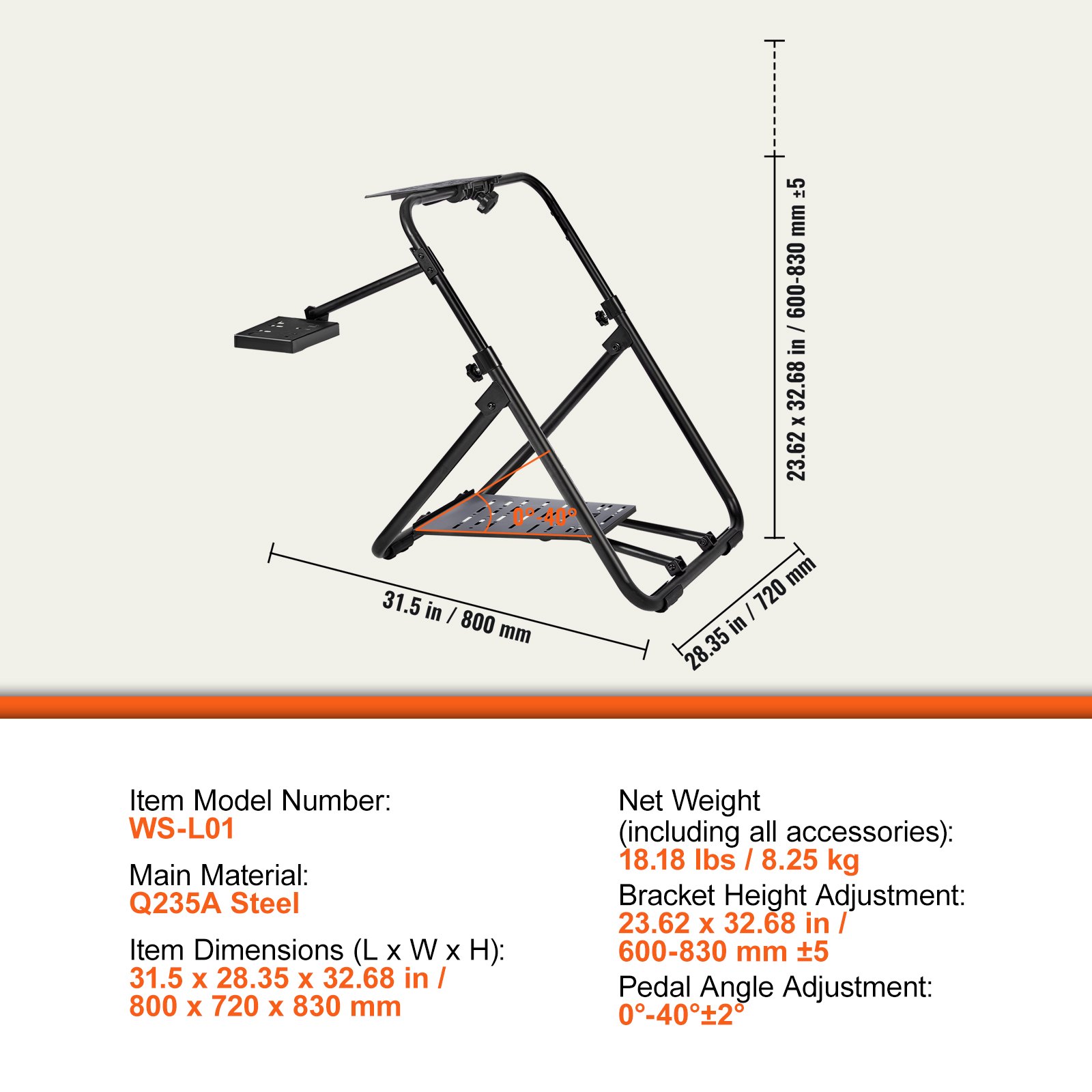 VEVOR Foldable Racing Steering Wheel Stand, Height Adjustable Universal Base Compatible with Logitech & Thrustmaster Racing Wheel and Pedal, Heavy-duty Frame Standard GT/Formula Seating Portable