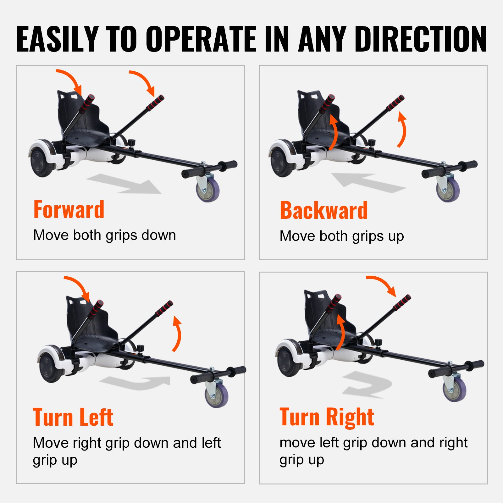 VEVOR Hoverboard Seat Attachment, Compatible with All 16.5cm20.3cm21.6cm25.4 Hoverboards,Grips Control,Adjustable Frame Length and 99.8 kg Load Capacity,Hover Board Go Karts Accessory,for Kids Adults