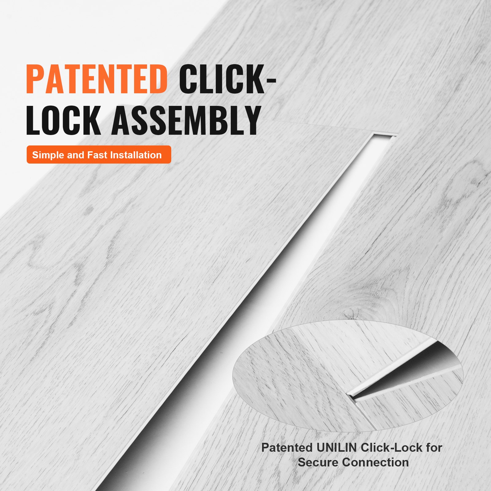 VEVOR Interlocking Vinyl Floor Tiles 48 x 7.3 inch, 10 Tiles 5.5mm Thick Snap Together, Light Gray Wood Grain DIY Flooring for Kitchen, Dining Room, Bedrooms & Bathrooms, Easy for Home Decor