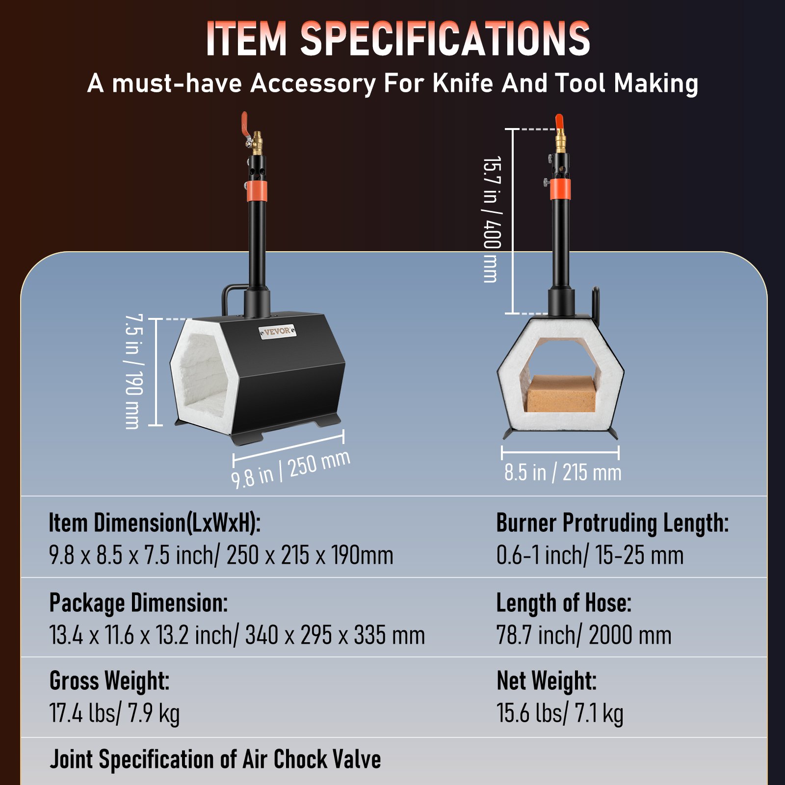 VEVOR Propane Forge Portable, Single Burner Tool and Knife Making, Large Capacity Blacksmith Farrier Forges, Mini Furnace Blacksmithing, Gas Forging Tools and Equipment, Complete Kit