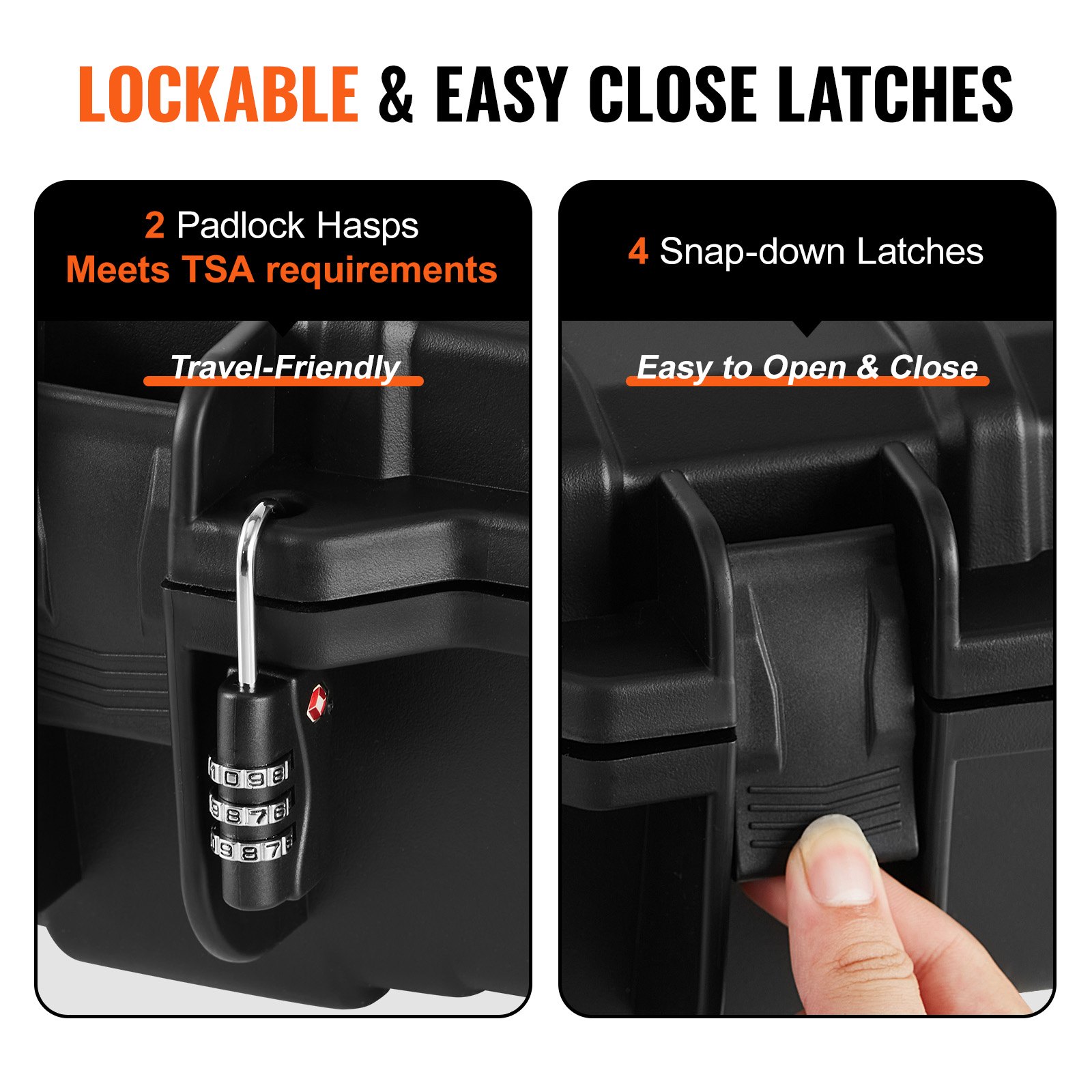 Our hard rifle case meets the TSA requirements and features 2 padlocks to secure your rifles, preventing unauthorized access to your firearm. Additionally, the snap-down latches are not only easy to operate but also ensure secure closure of the gun case.