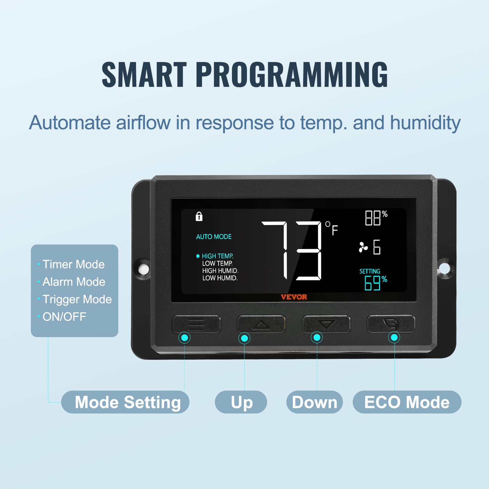 VEVOR Shutter Exhaust Fan, 406 mm /16inch with Temperature Humidity Controller, EC-motor, 1747 CFM, Variable Speed Adjustable Wall Mount Attic Fan, Ventilation and Cooling for Greenhouses, Garages, Sheds
