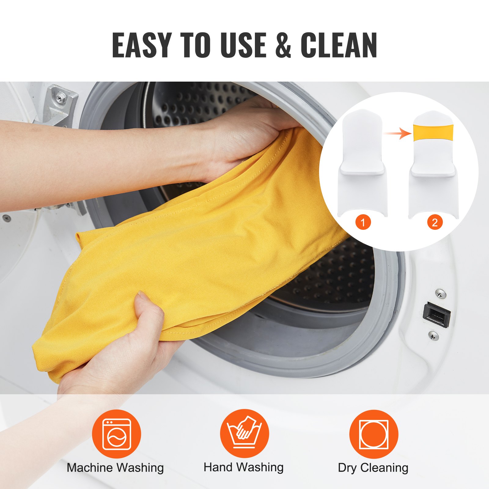 VEVOR Stretch Spandex Chair Sashes, Chair Slipcover and Stretch Chair Sash with Round Buckle, Elastic Chair Bands, Fitting Wedding, Holiday, Banquet, Party Chair Decoration (100 PCS Golden Yellow)