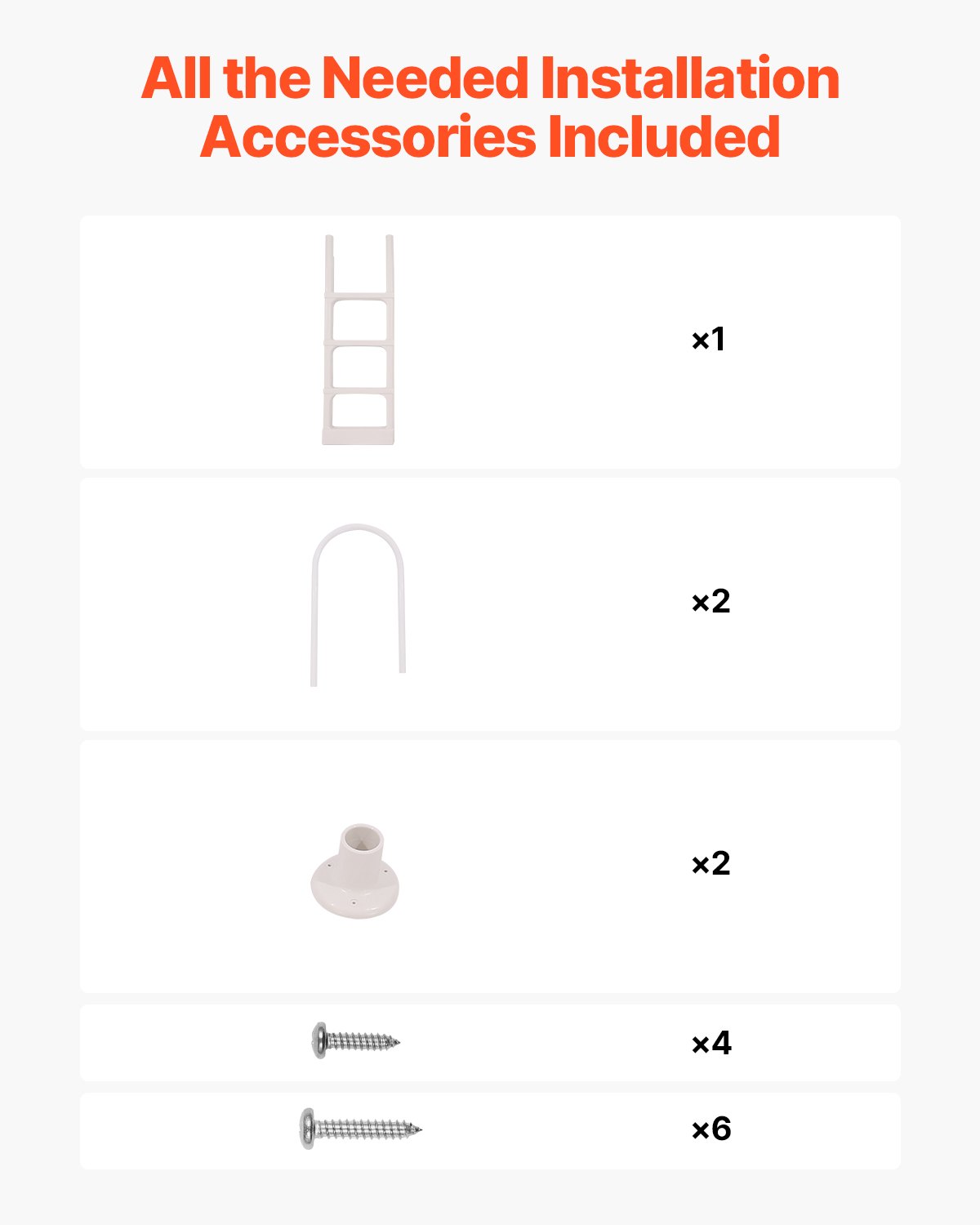 This pool ladder features 4 steps and double handrails on both sides. The steps are designed with textured patterns to ensure secure entry and exit, even underwater, helping prevent slips and accidents, ideal for 48-54 inches in-ground and above-ground pools