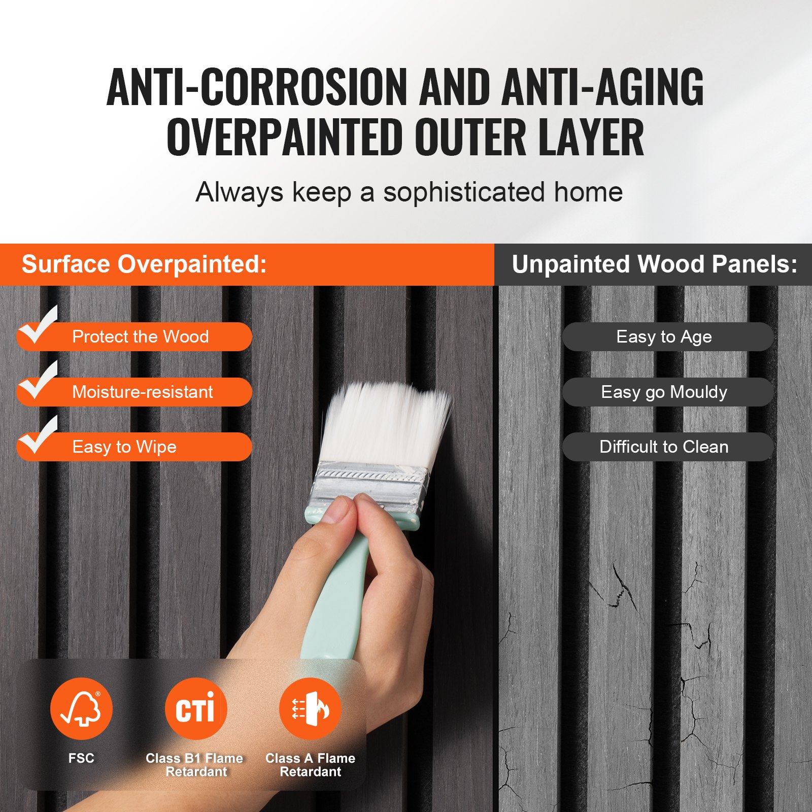 The outer layer is treated with a corrosion-resistant, anti-aging finish that complies with FSC and B1 fire safety standards. This not only enhances the wood’s durability but also provides excellent safety for your home, making daily cleaning a breeze.
