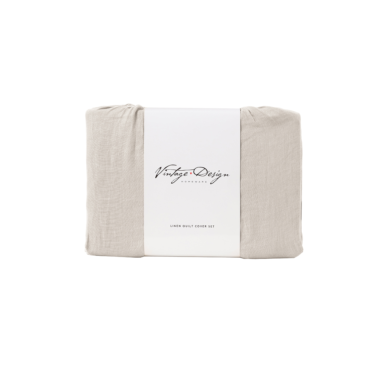 Vintage Design Homewares Natural French Linen Quilt Cover Set King