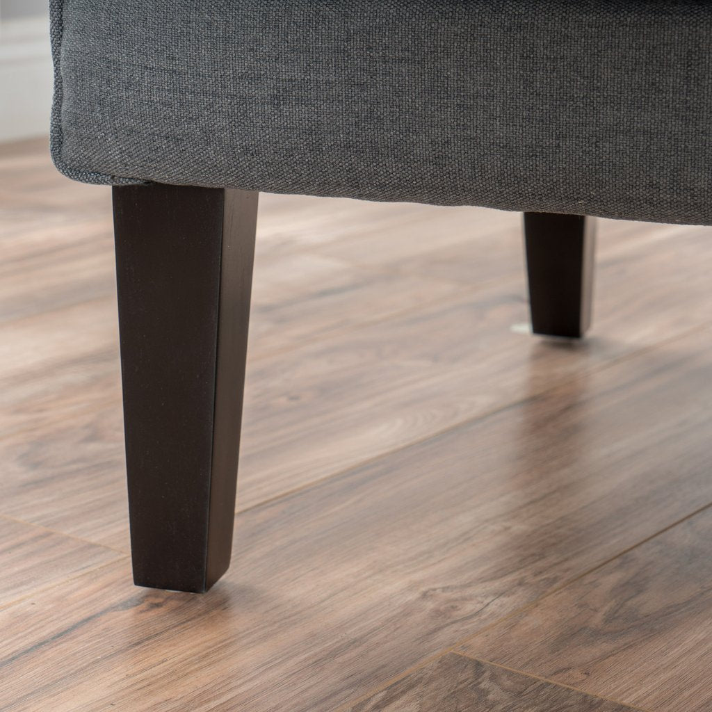 Upholstered in classyGrey Fabric theVintage design club chair provides a classic look to your living room bedroom or office. With soft Grey Fabricupholstery and a well padded seat and back the Salerno will be your favourite arm chair for years to come. It is constructed with strong hardwood for increased durability and has nailhead accents for added flair.