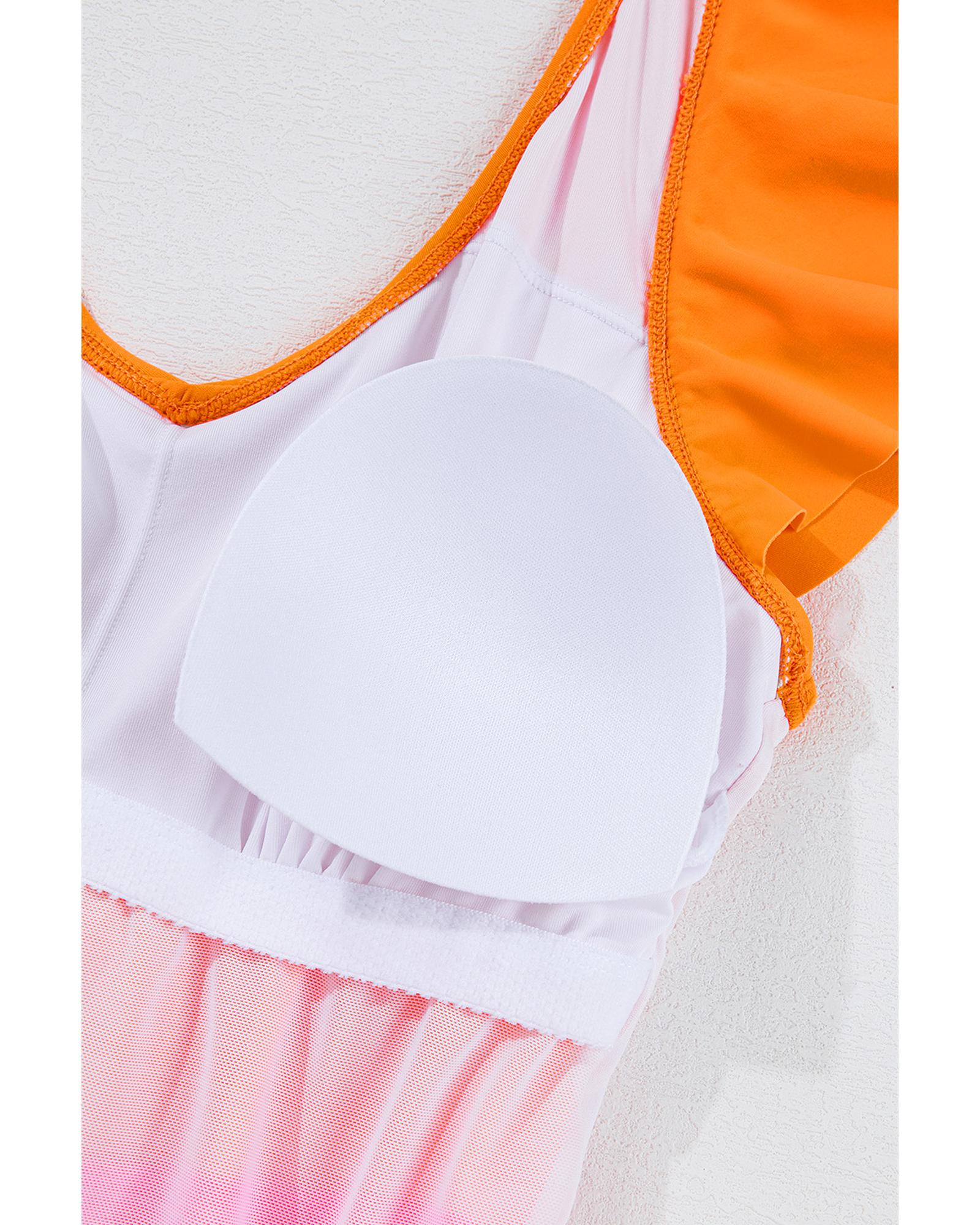 Vitality Orange Color Block Ruffled Knotted Backless One Piece Swimsuit – S