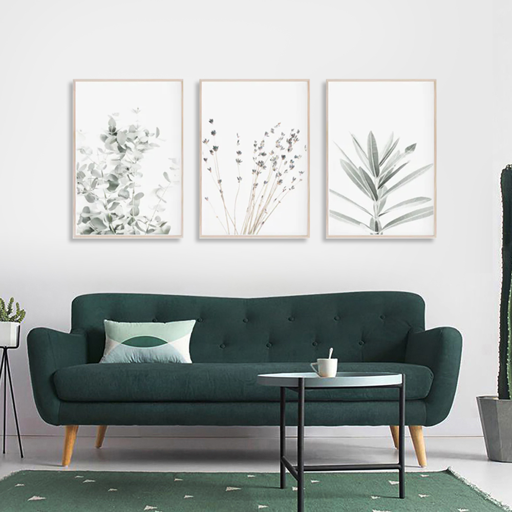 Wall Art 50cmx70cm Lavender Eucalyptus 3 Sets Wood Frame Canvas