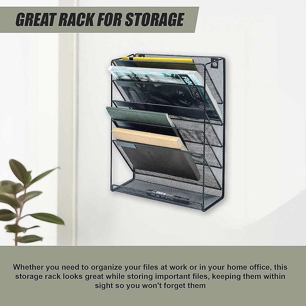 Durable and practical, the rack gives you five slots to store files you need to keep close at hand. Coated with a protective film that guards against rust, you'll enjoy this handy organizer for years to come.