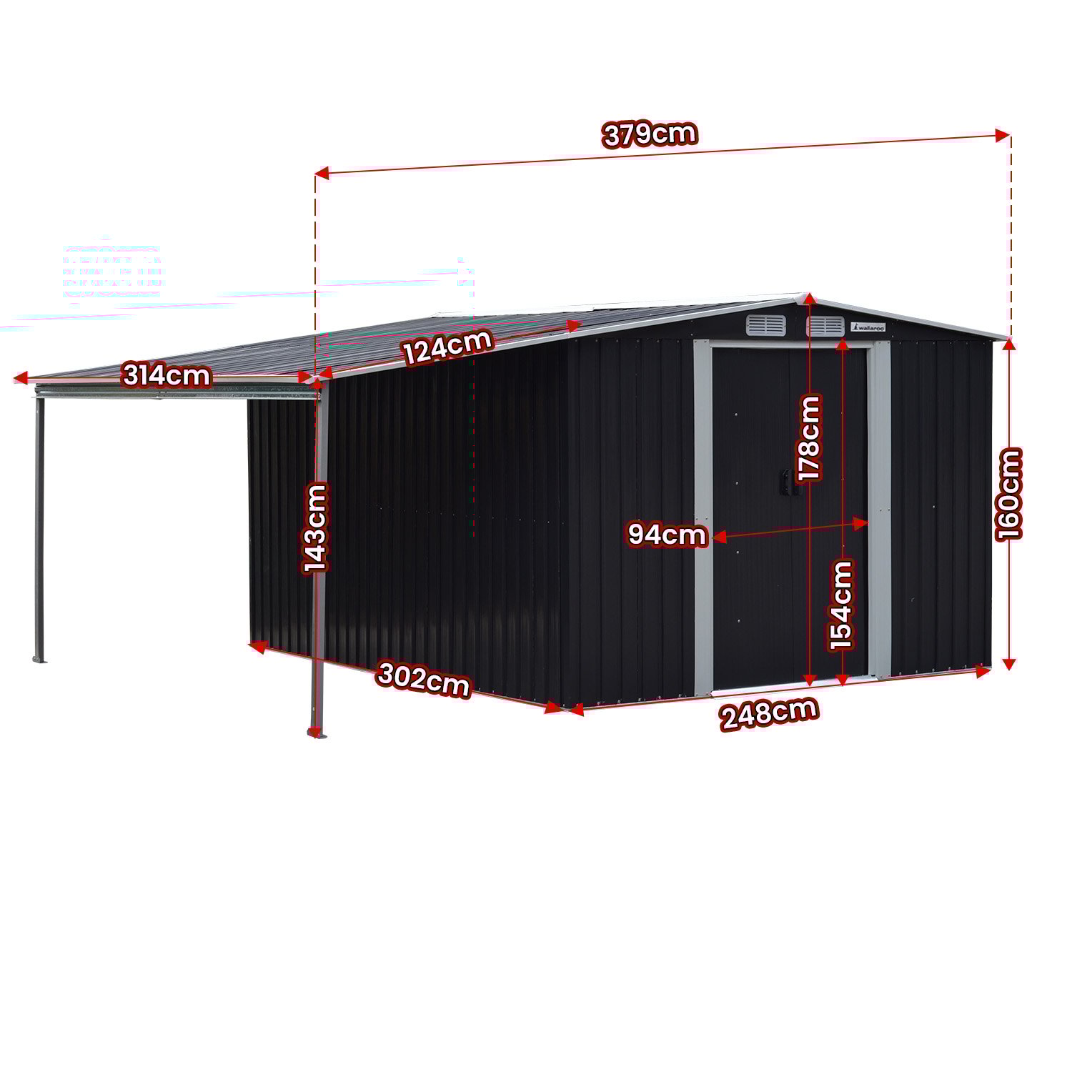 Wallaroo 10x8ft Zinc Steel Garden Shed with Open Storage – Black