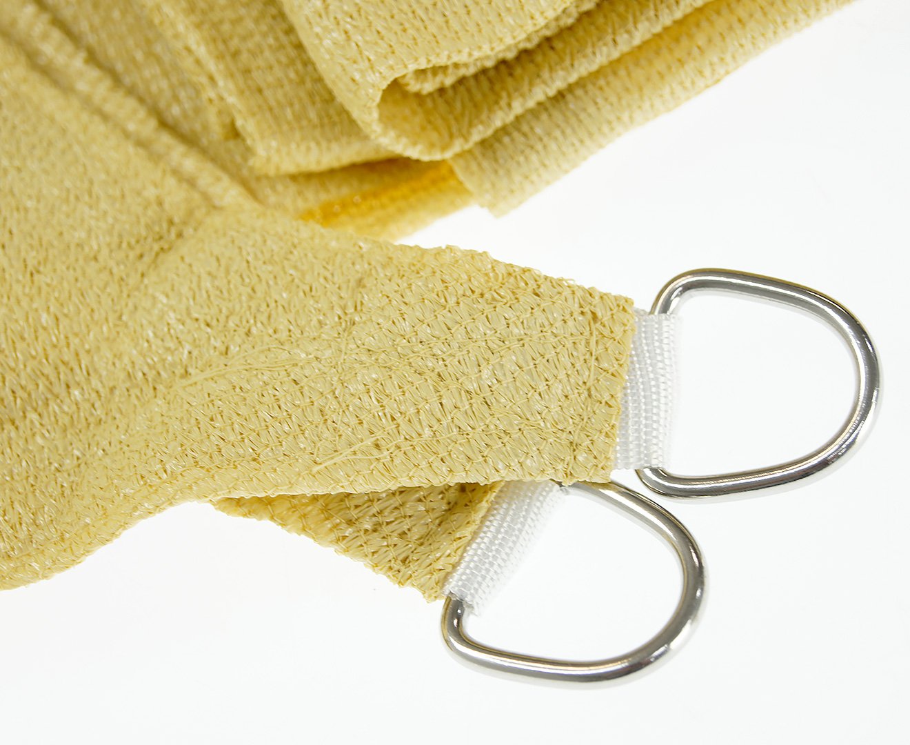 This shade sail is constructed using high-quality stitching, which includes visible seams. The seams enhance durability and ensure long-lasting performance. Images are for illustration purposes only.