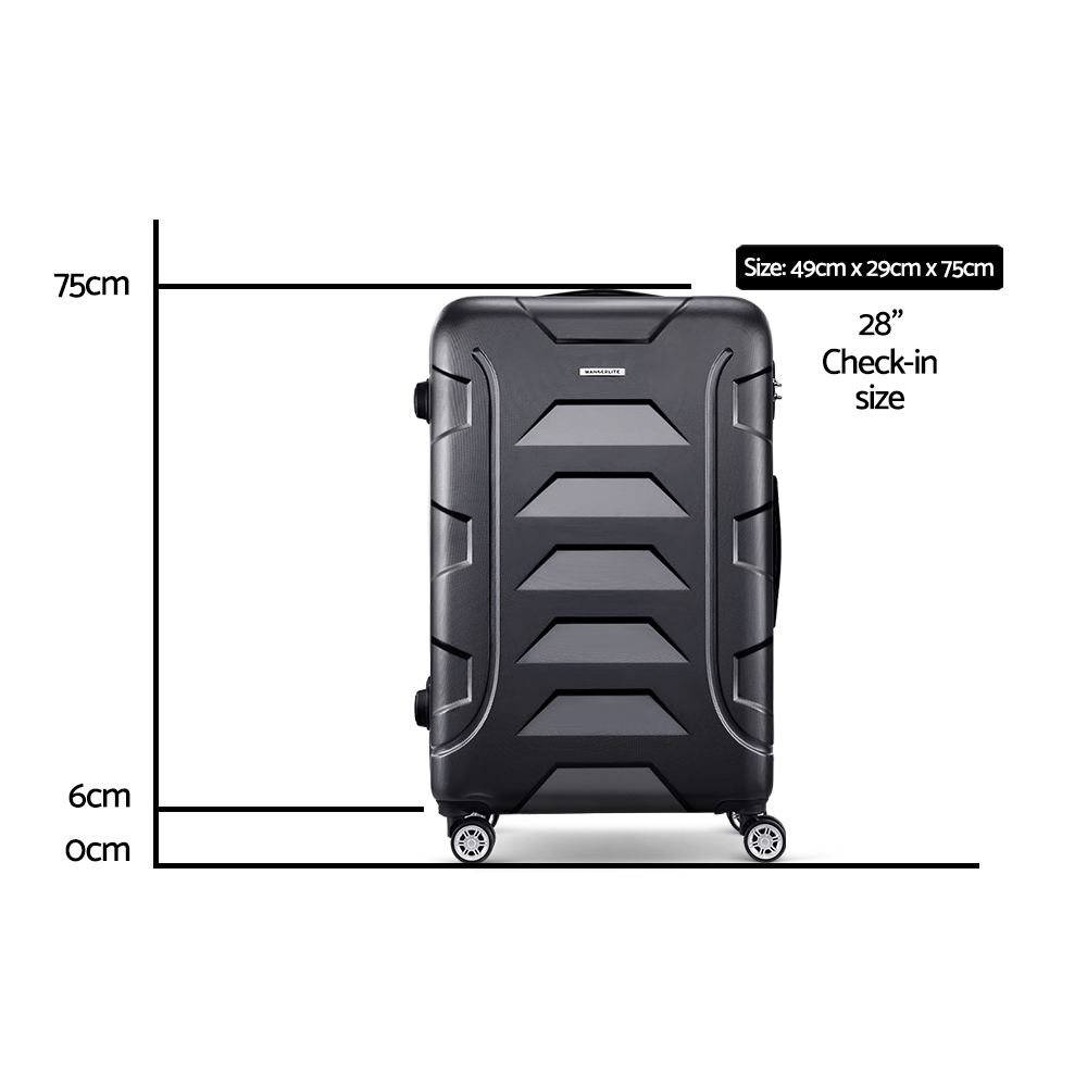 Wanderlite 28 Inch Luggage with TSA Lock Spinner Travel Suitcase Carry On Hard Shell Luggage Case Black