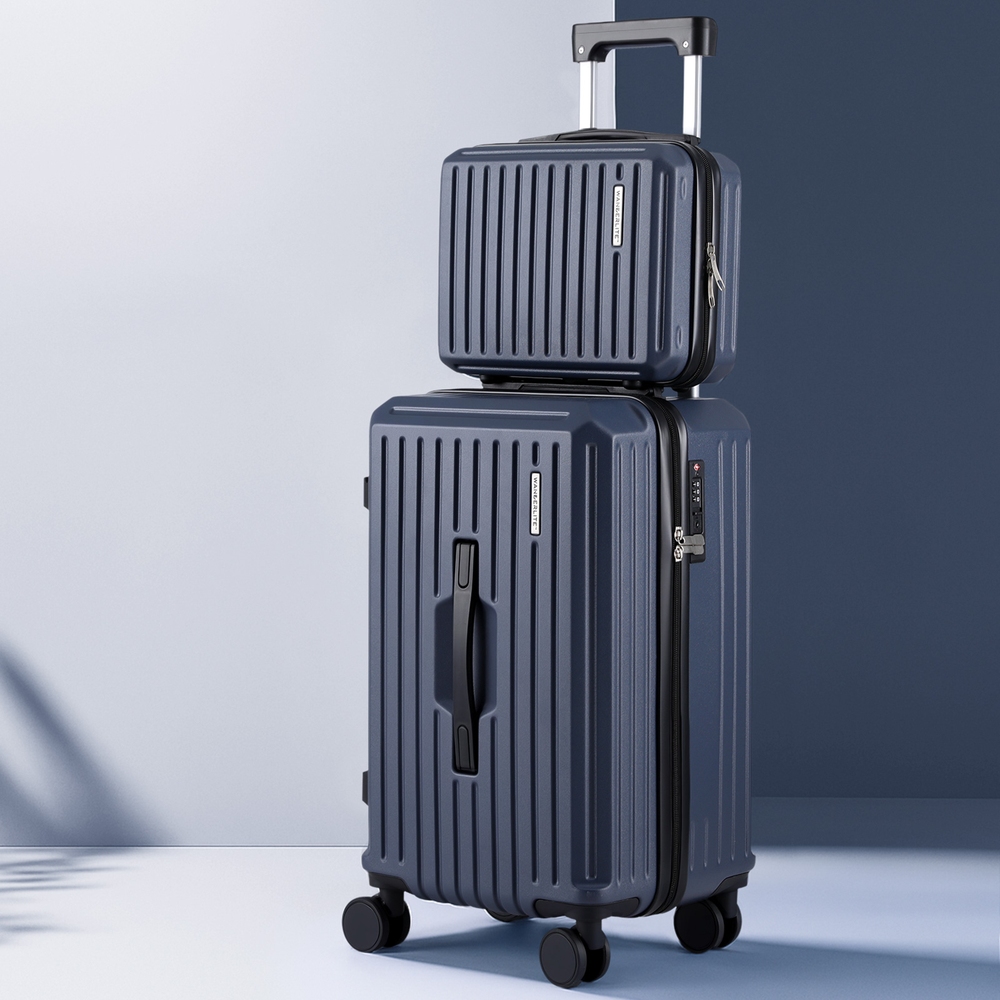 Wanderlite 2pcs Trunk Luggage Suitcase Travel Carry On TSA Lock 12″ 20″ Navy