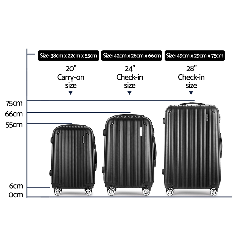 Wanderlite 3 Set Luggage 20-24-28 Inch with TSA Lock Spinner Hard Shell Travel Suitcase Luggage Organiser Case Black