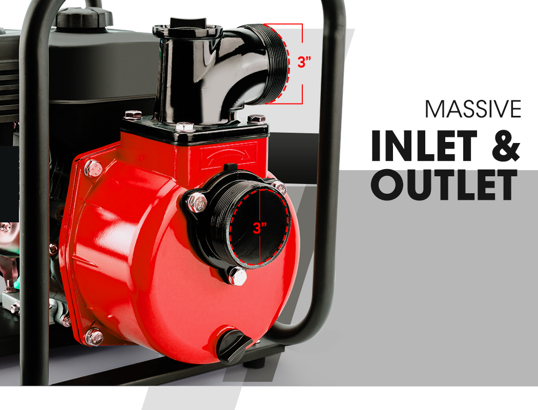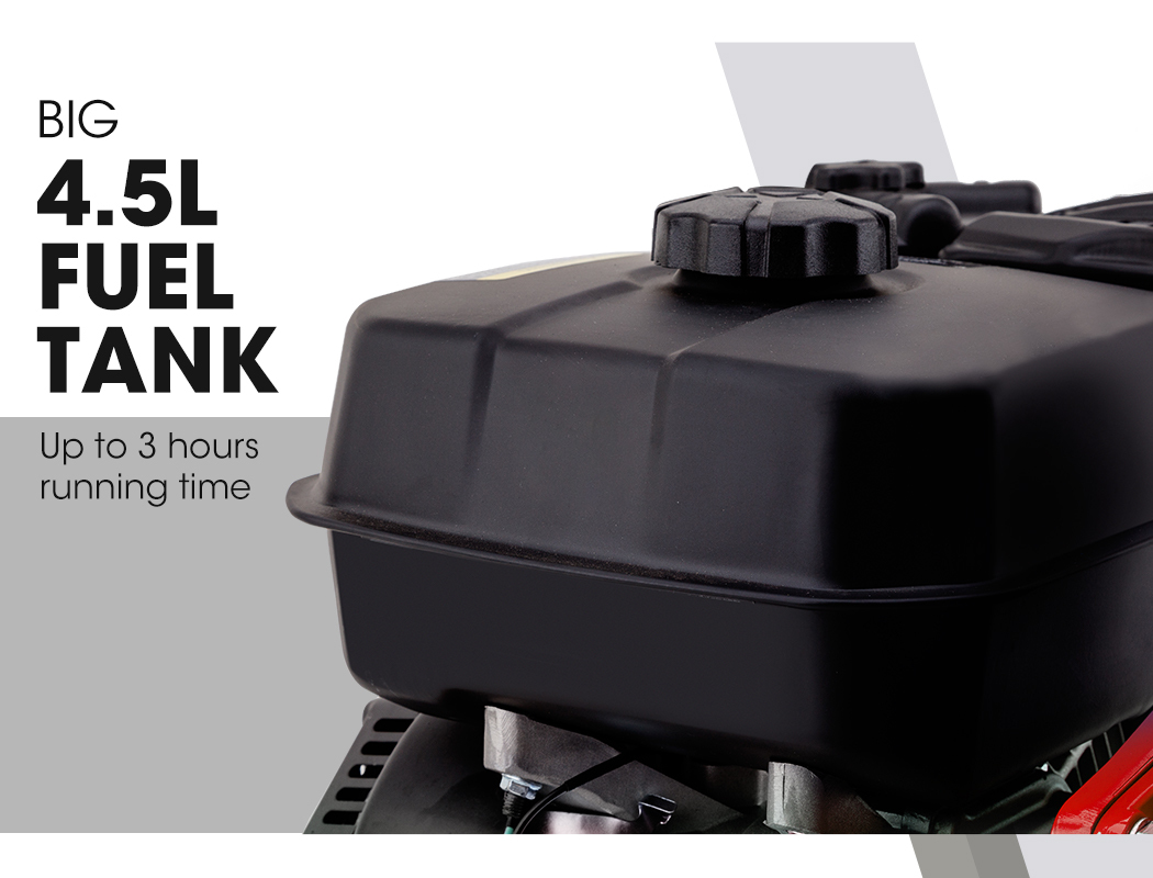 This commercial series features 80mm inlet/outlets, flowing an impressive 40000 Litres/hour (666L/min) with a total head of 60m; coupled with a powerful Warton 235cc 4-stroke engine, transferring water up slope or to a second, third or fourth story now takes less setup time and half the fuss. A convenient sized 4.5L fuel tank means it can run for 3 hours on a single fill (load dependent).