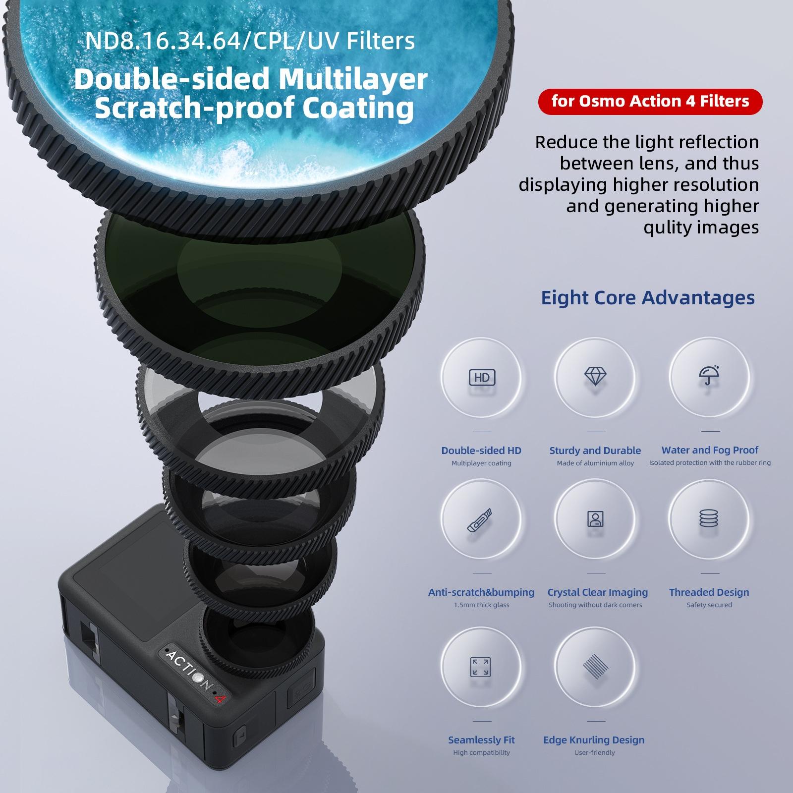 Waterproof Filter for Dji Action 4 Sports Camera – Cpl – Cpl