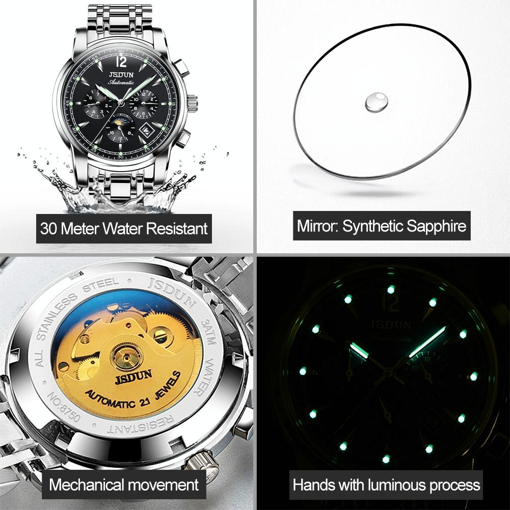 Waterproof Luminous Mechanical Watch for Men – 8750 – Silver Black