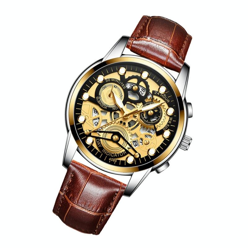 Waterproof Luminous Men Quartz Watch – Hollow Design – Gold And Gold Surface