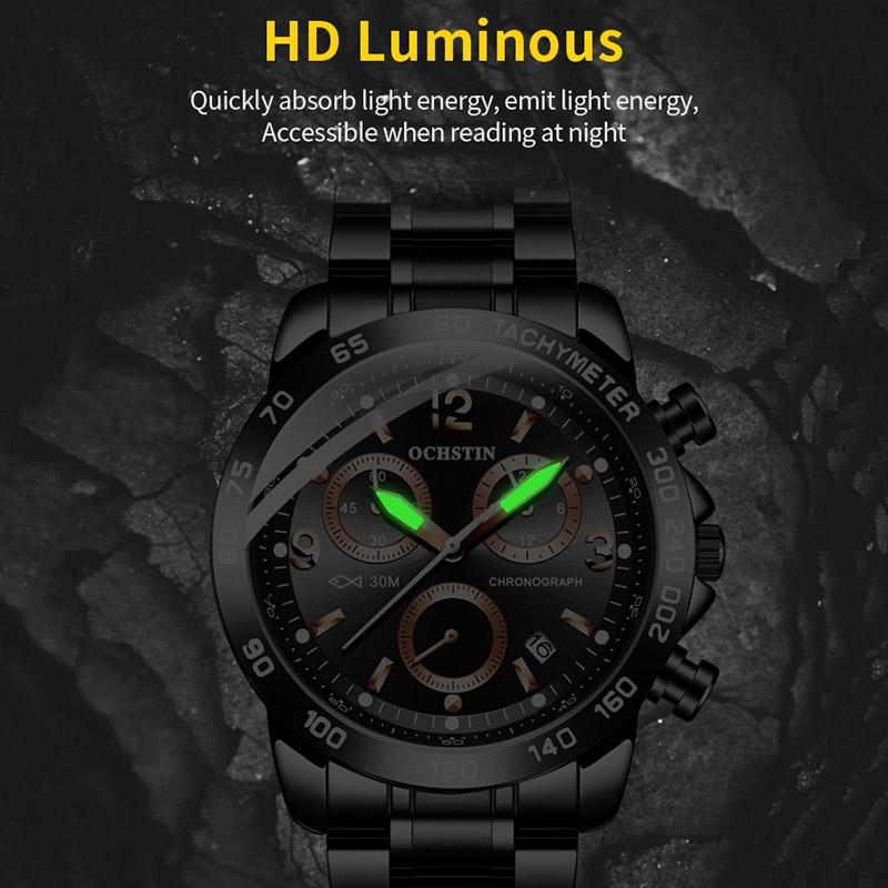 Waterproof Luminous Men Watch with Steel Strap – Black 02