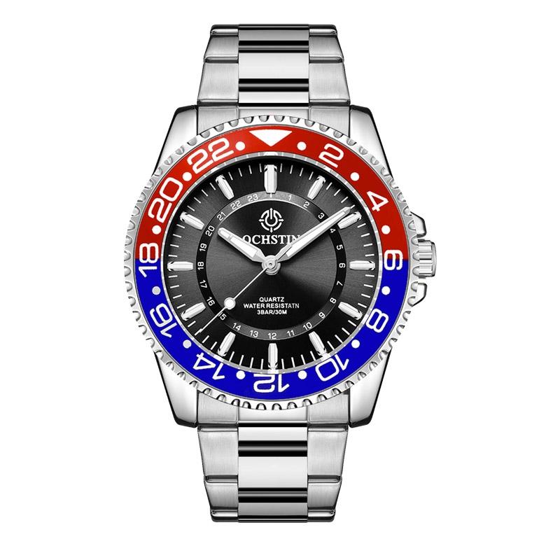 Waterproof Luminous Men Watch with Steel Strap – Multifunctional – Blue Red + Silver