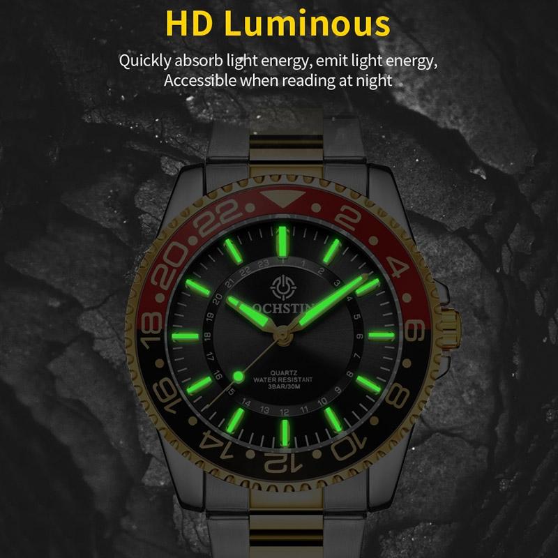 Waterproof Luminous Men Watch with Steel Strap – Multifunctional – Green + Gold
