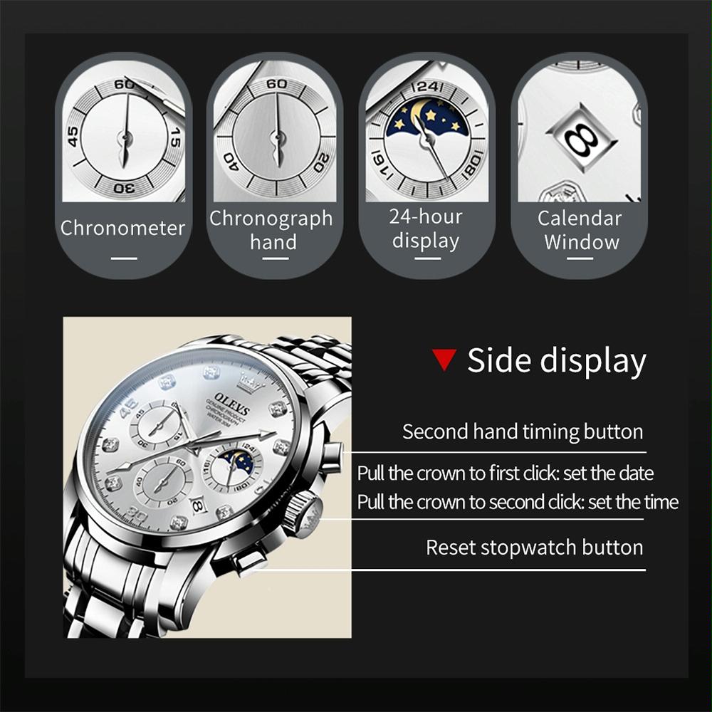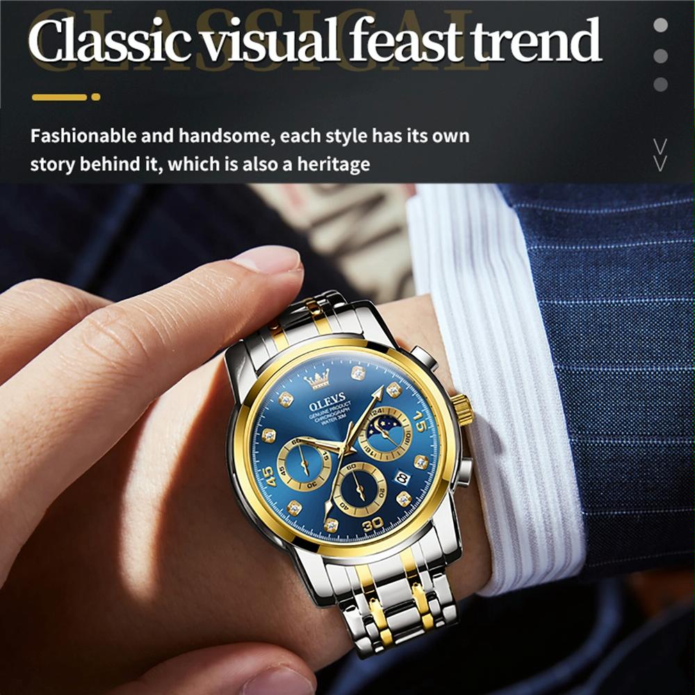 Waterproof Luminous Quartz Watch for Men – Multifunctional – White + Gold