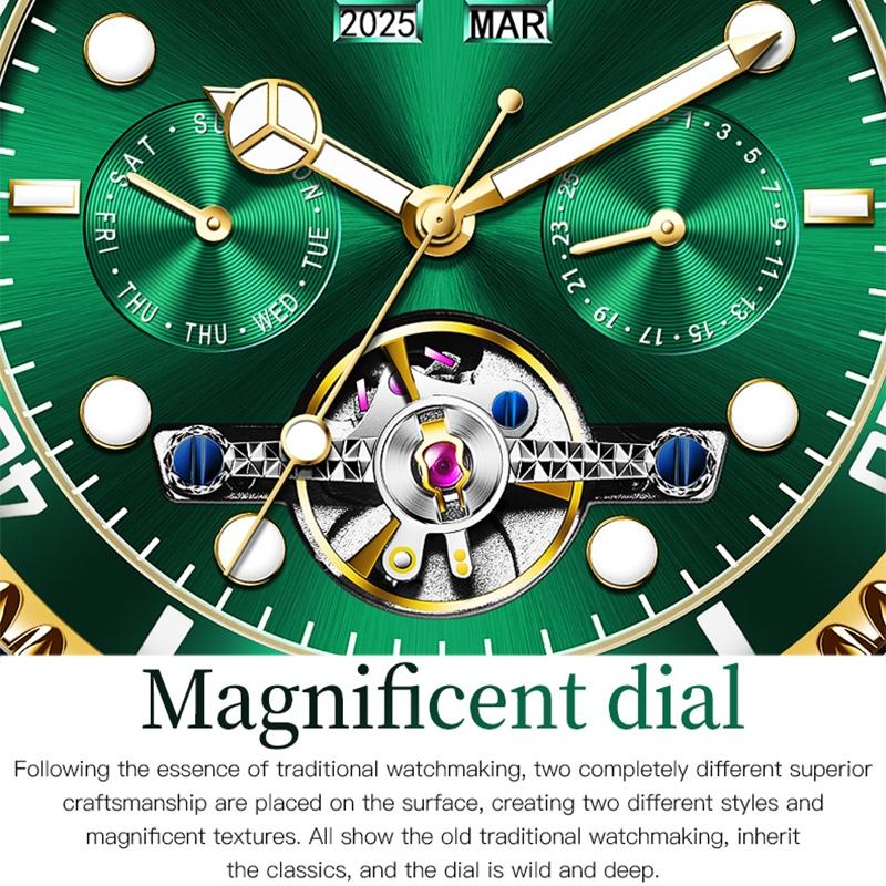 Waterproof Mechanical Watch for Men – Multifunctional – Black + Gold