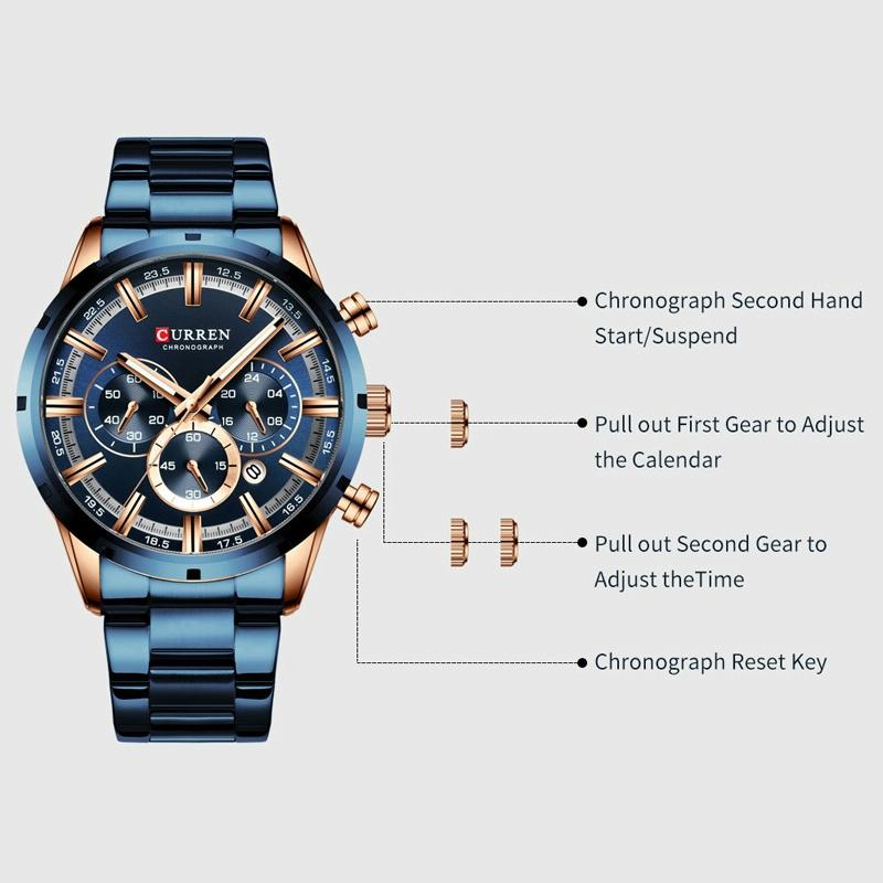 Waterproof Men Business Watch with Quartz Movement and Steel Belt – Rose Shell Blue