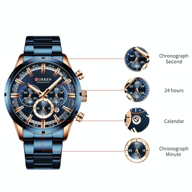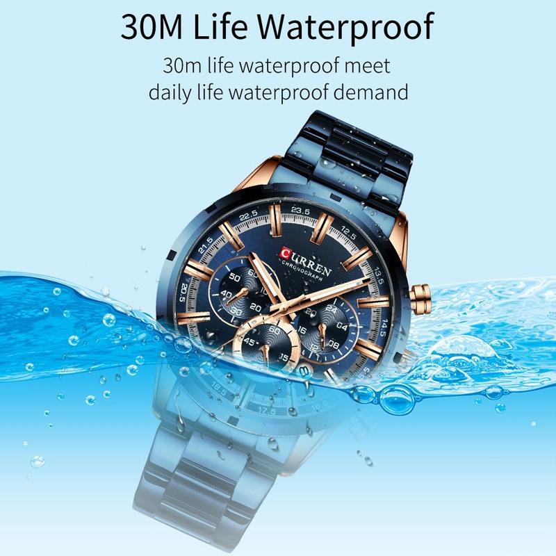 • 1 x M8355 Men Waterproof Quartz Six Stitches Calendar Steel Belt Business Watch