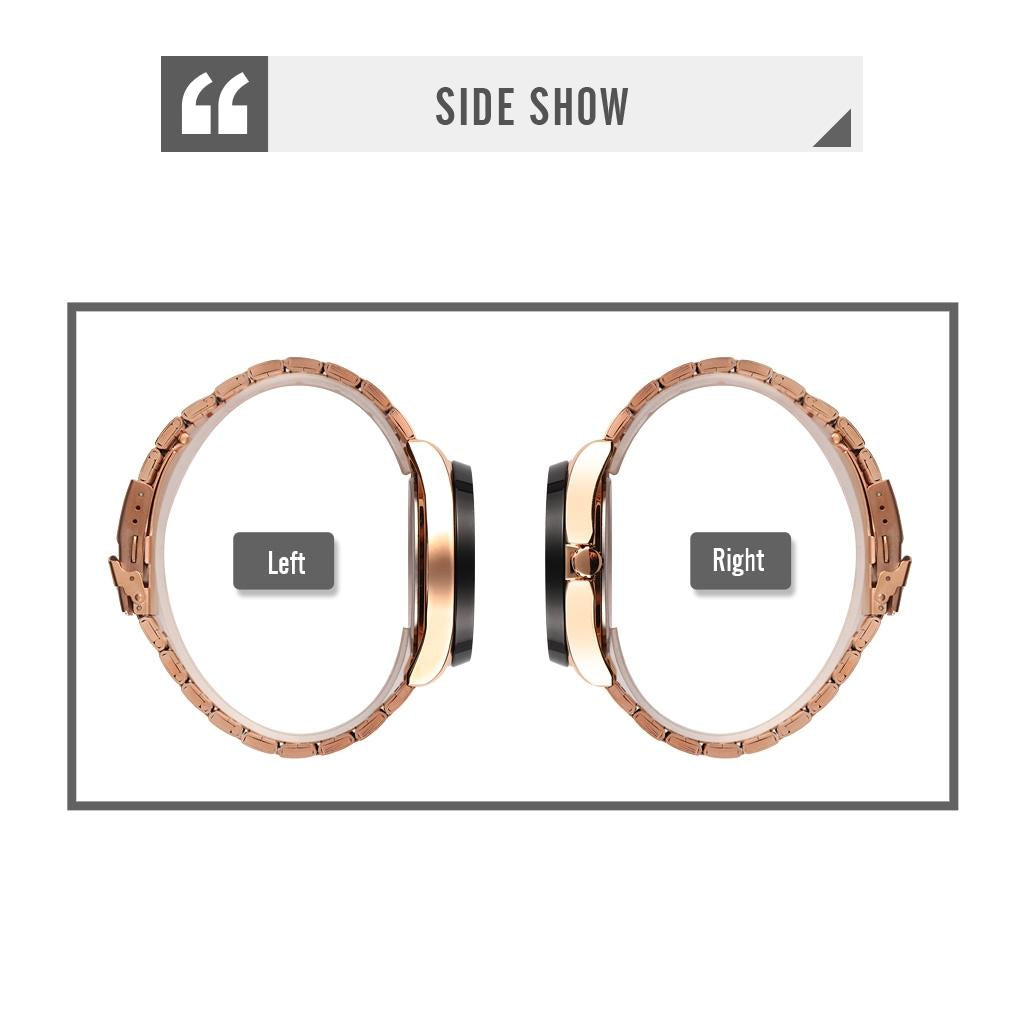 • Material: Glass (Mirror), Zinc Alloy (Case), Stainless Steel (Strap and Buckle)